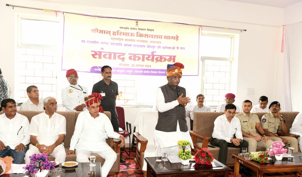 राज्यपाल श्री हरिभाऊ बागडे ने जोधपुर में सोमवार को जनजातीय क्षेत्र विकास विभाग द्वारा संचालित राजकीय जनजाति आश्रम कन्या छात्रावास की बालिकाओं से संवाद किया।