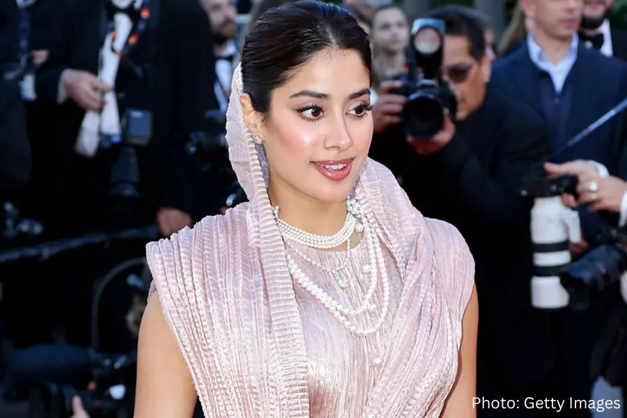 जान्हवी के इस लुक को देखकर कई फैंस को उनकी मां और दिग्गज अभिनेत्री श्रीदेवी की याद आ गई। उन्होंने अपने लुक को लेयर्ड पर्ल नेकलेस और मैचिंग डायमंड स्टड के साथ पूरा किया था, जो उनके सौंदर्य को और निखार रहे थे। ग्लैमरस मेकअप और विंग्ड आईलाइनर ने उनके लुक को और भी आकर्षक बना दिया।