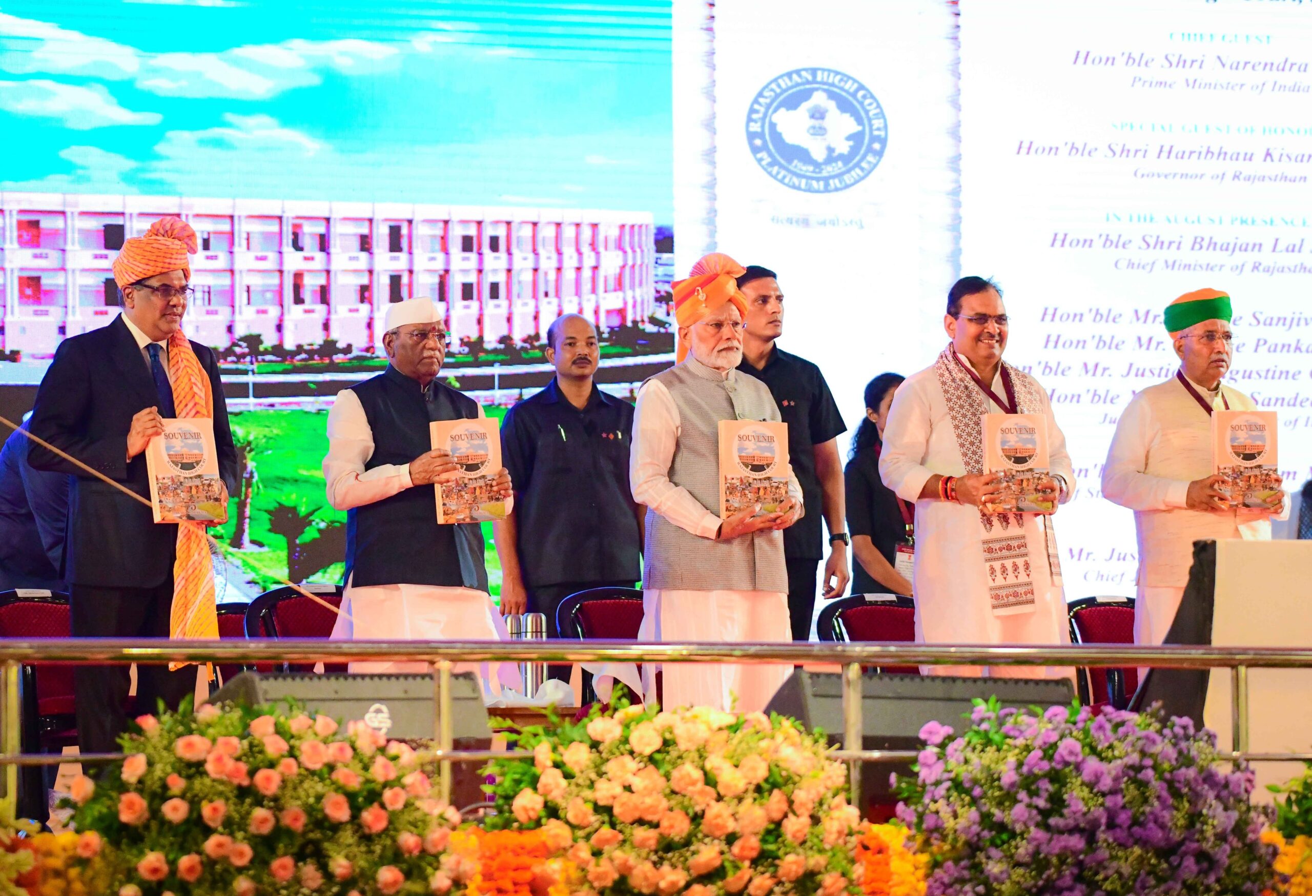 प्रधानमंत्री ने राजस्थान उच्च न्यायालय के प्लेटिनम जुबली समारोह का हिस्सा बनने पर खुशी जाहिर करते हुए कहा कि राजस्थान उच्च न्यायालय ऐसे समय में 75 साल पूरे कर रहा है, जब भारत का संविधान भी अपने 75 साल पूरे करने वाला है। यह कई महान हस्तियों की न्याय निष्ठा और योगदान का स्मरण करने का अवसर है।