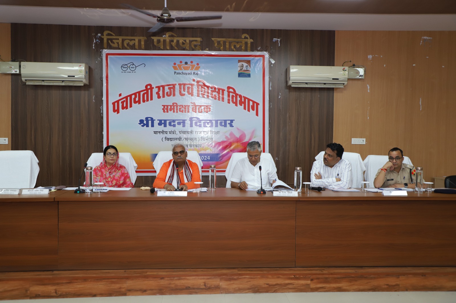 Education and Panchayati Raj Minister श्री मदन दिलावर ने गुरुवार को पाली जिला परिषद सभागार में शिक्षा व पंचायती राज विभाग की योजनाओं की प्रगति के सम्बन्ध में बैठक ली।