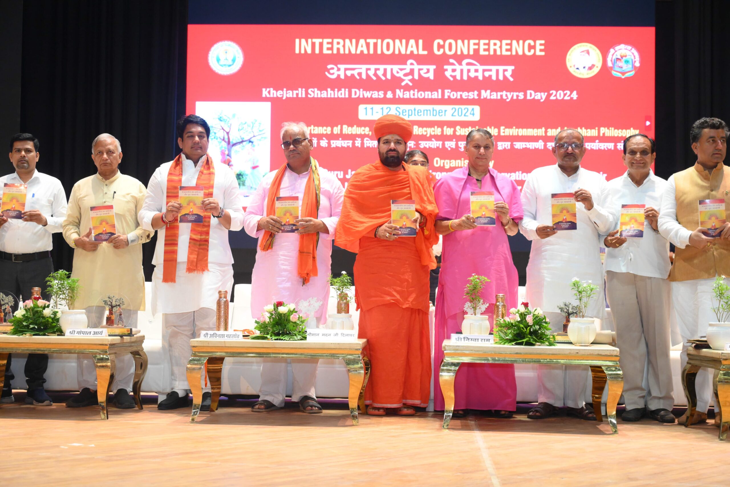 RAJASTHAN Water Resources Minister शहीदी दिवस एवं राष्ट्रीय वन शहीद दिवस 2024 के अवसर पर अंतर्राष्ट्रीय सम्मेलन का आयोजन बुधवार को जोधपुर जिले के मारवाड़ इंटरनेशनल सेंटर, राजकीय पॉलिटेक्निक कॉलेज में किया गया। सम्मेलन का आयोजन गुरु जम्भेश्वर पर्यावरण संरक्षण समिति शोधपीठ, जेएनवीयू जोधपुर एवं जम्भाणी साहित्य अकादमी, बीकानेर के संयुक्त तत्वावधान में किया गया।