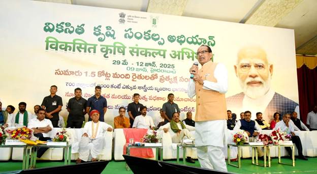 तेलंगाना में केंद्रीय कृषि मंत्री श्री शिवराज सिंह चौहान ने किसानों से संवाद किया और कृषि विकास, विविधिकरण व MIS योजना पर चर्चा की। पढ़ें पूरी रिपोर्ट।